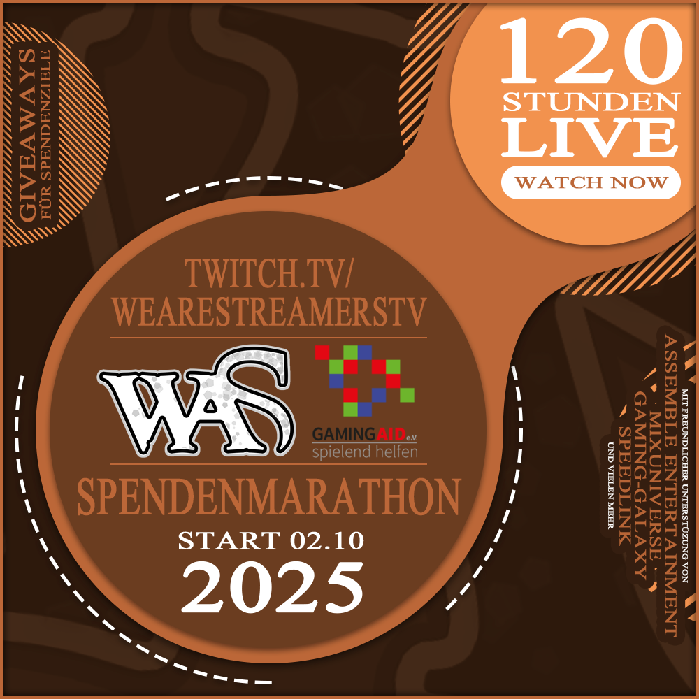 Sehr geehrte Streamer-/, Follower-/ und Zuschauer*innen,Wie jedes Jahr wollen wir etwas Gutes im Bereich Gaming tun. Aus diesem Grund präsentieren wir voller Stolz unseren Siebten #Spendenmarathon! Und wieder mindestens 5 Tage ( 120 Stunden am Stück ! ) streamen für den guten Zweck und keine Sorge, es sind mehrere Streamer, die sich abwechseln.